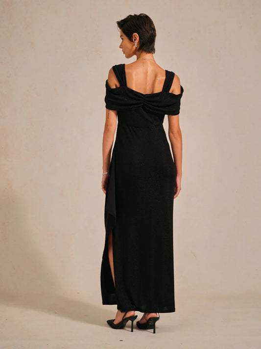 Elegant V-Neck Cold Shoulder Sequin Dress