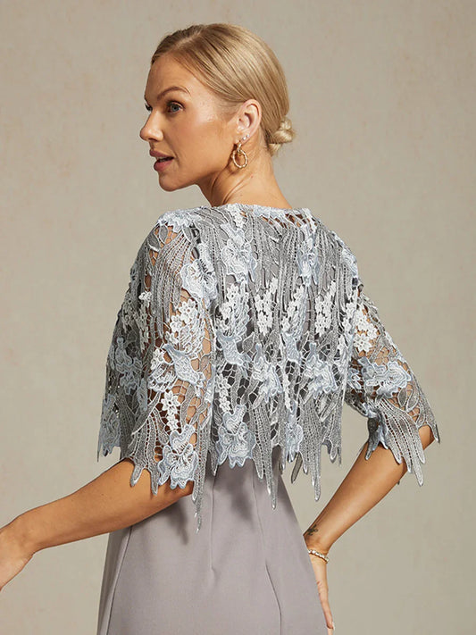 Graceful Mesh Lace Jacket with 3D Floral Embellishments