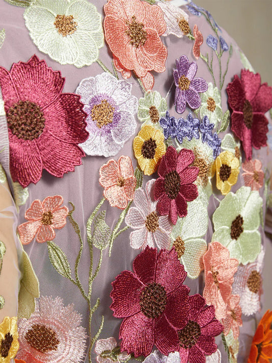 Graceful Mesh Lace Jacket with 3D Floral Embroidery