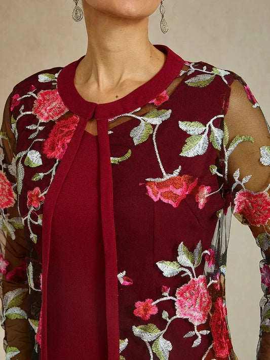 Mesh Lace Embroidered Floral Dress Set