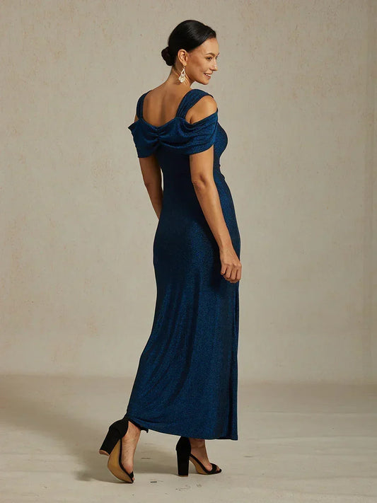 V-Neck Sequin Embroidered Cold Shoulder Evening Dress