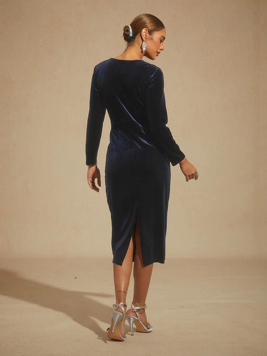Stretch Velvet Evening Gown with Rhinestone Embellished