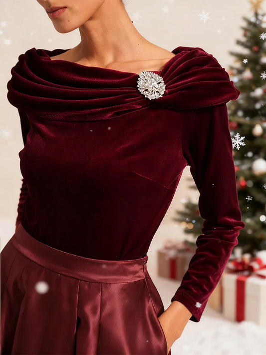 Elegant Stretch Velvet Blouse with Cowl Collar