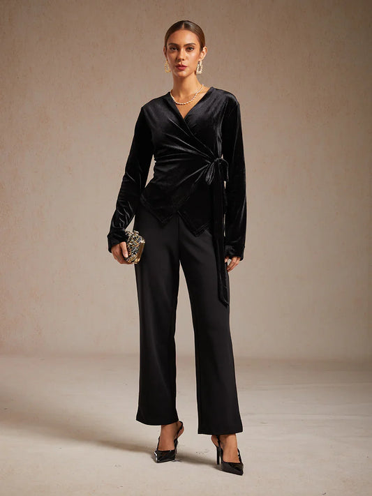Velvet Wrap Blouse with V-Neckline
