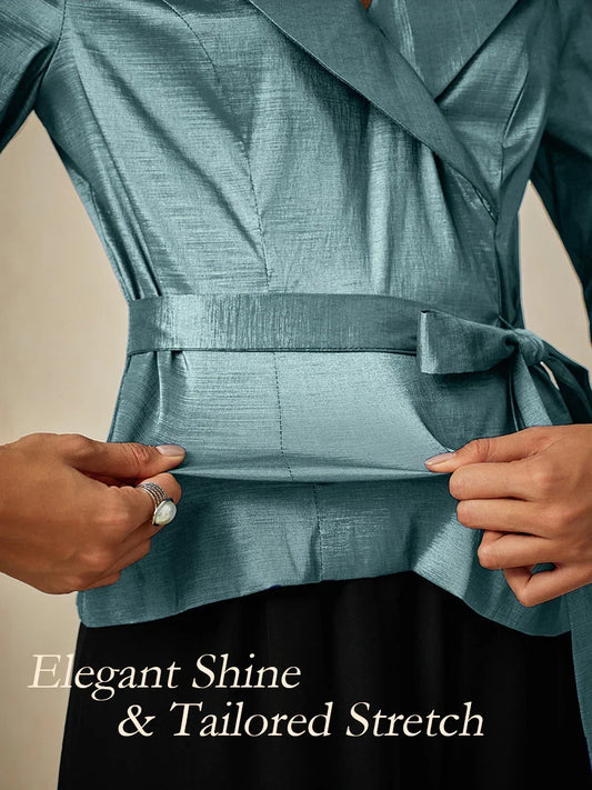 3/4 Sleeve Stretch Shimmer Taffeta Blouse