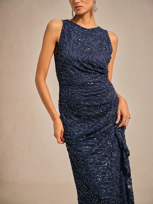 A-Linien-Kleid aus Rosettenspitze mit Paillettenverzierung