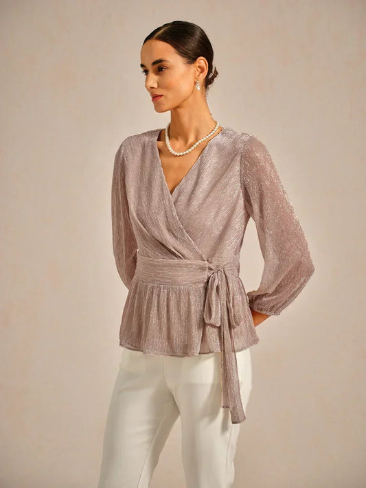 Metallic Pleated Chiffon Evening Wrap Top