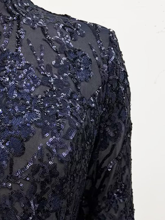 Elegant Mandarin Collar Sequin Twinset
