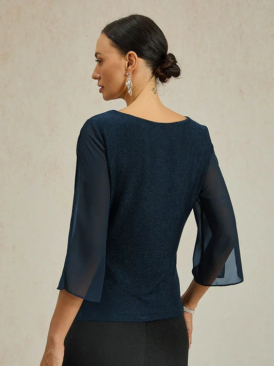 Beaded 3/4 Sleeve Metallic Knit Blouse