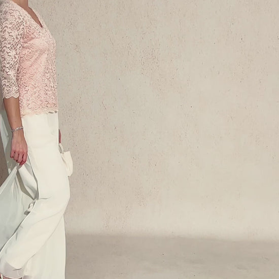 A soft stretch lining provides comfortable coverage.Perfect for pairing with skirts or ivory chiffon pants, this top offers a refined and versatile look for any special occasion.