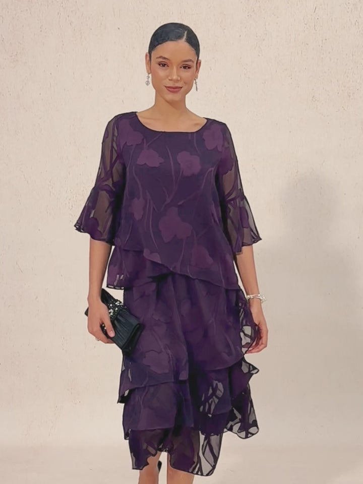 Elegantes Spitzen- und Chiffonkleid in Tea-Länge
