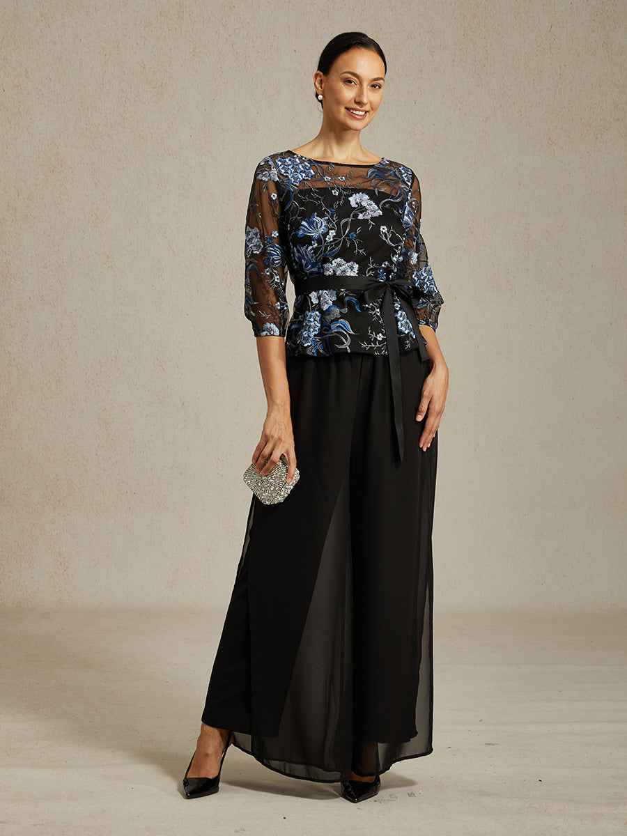Elevate your wardrobe with this exquisitely embroidered blouse, featuring a delicate illusion neckline and charming 3/4 bubble sleeves for a touch of modern romance. The included tie belt defines your silhouette, creating a flattering shape. Expertly crafted from luxurious fabric, this piece transitions seamlessly from professional daytime settings to sophisticated evening occasions, offering versatile elegance with thoughtful attention to detail.