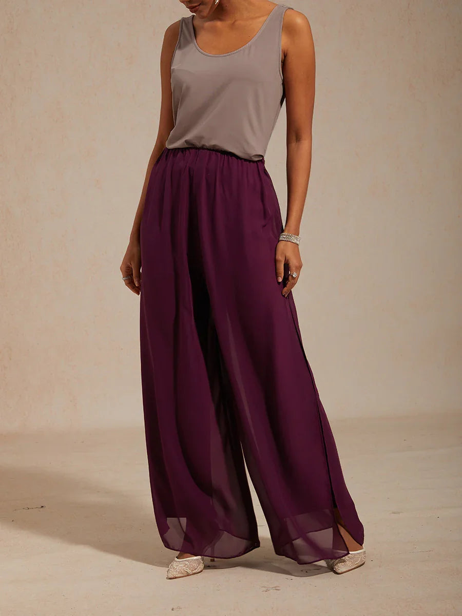 Hose mit geradem Bein und Chiffon-Überlagerung mit Beinschlitz