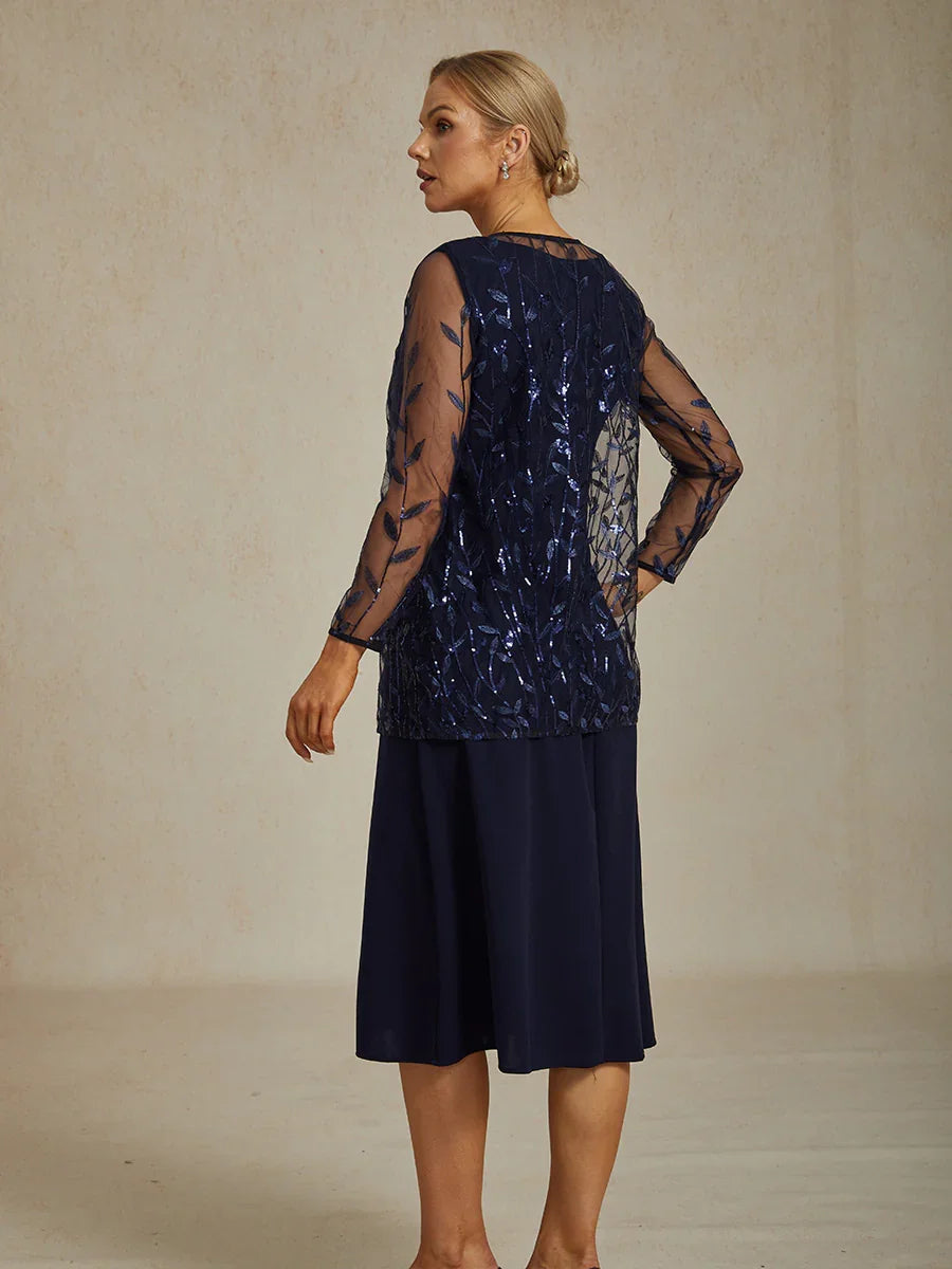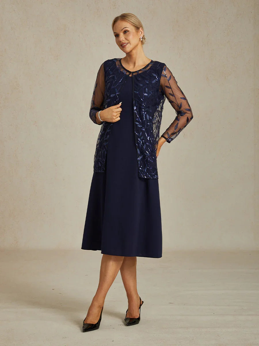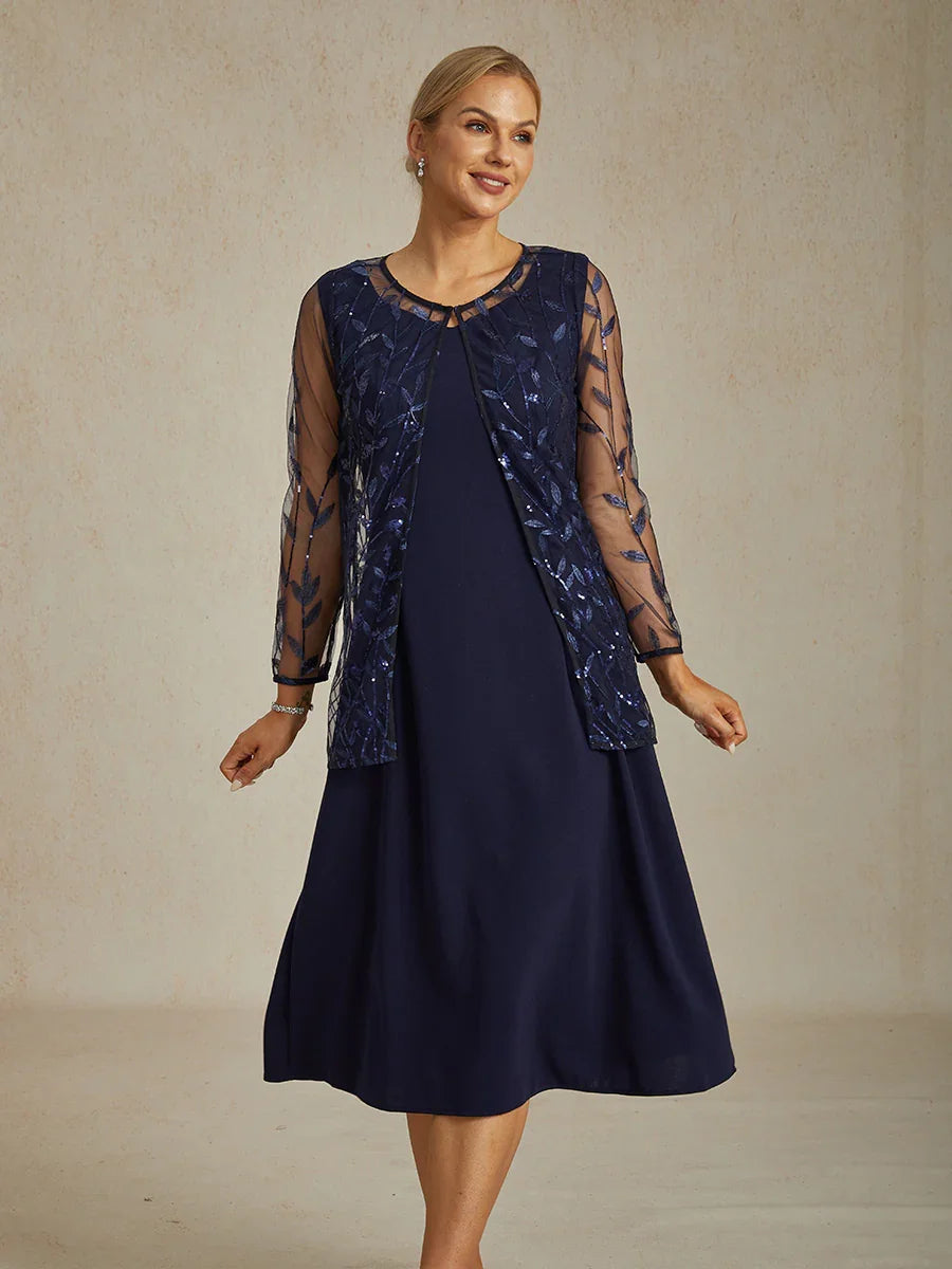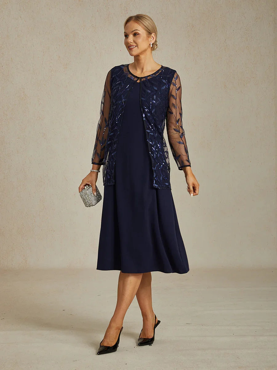 Elegantes Spitzen- und Chiffonkleid in Tea-Länge