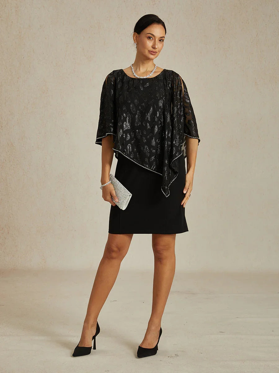 Dieses A-Linien-Kleid mit Rosetten-Print schmeichelt und strahlt . Es besticht durch schimmernde Paillettenspitze und weiche, transparente kurze Ärmel . Die strukturierte, aber fließende Silhouette betont die Taille und läuft sanft zum Saum hin aus – für Eleganz und Leichtigkeit. Ein weiches, elastisches Futter sorgt für Tragekomfort – tagsüber wie abends. Dieses Kleid ist ein Favorit der Braut- und Bräutigammütter und verleiht Hochzeiten, Galas und formellen Abenden raffinierten Glanz und zeitlose Eleganz.