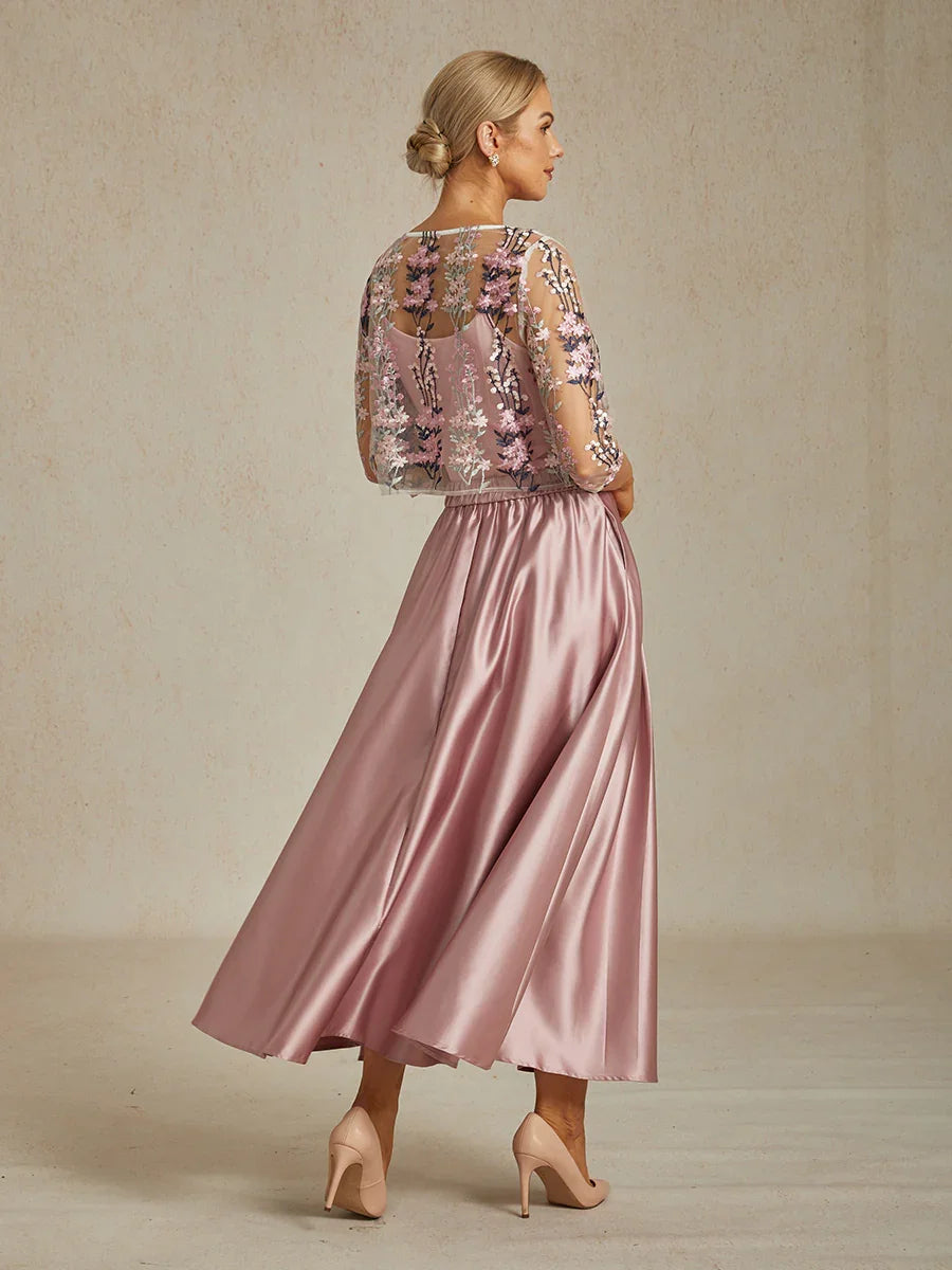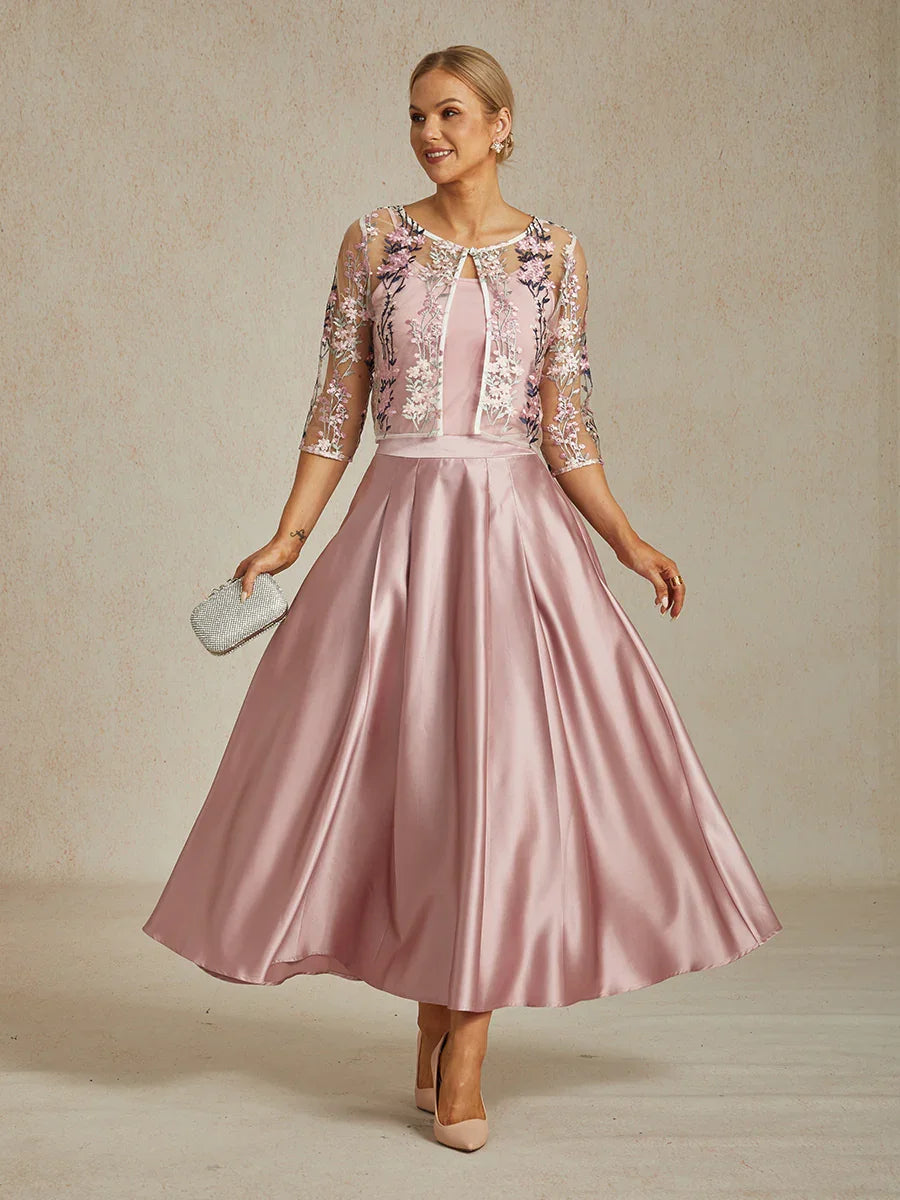 Elegantes Spitzen- und Chiffonkleid in Tea-Länge