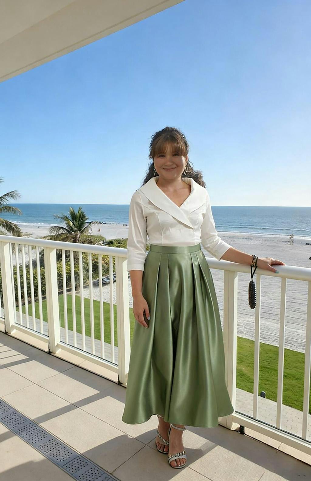 - Stoff: Stretch-Taft, glatte Textur, strukturiertes Gefühl, mittleres Gewicht, dezenter Glanz