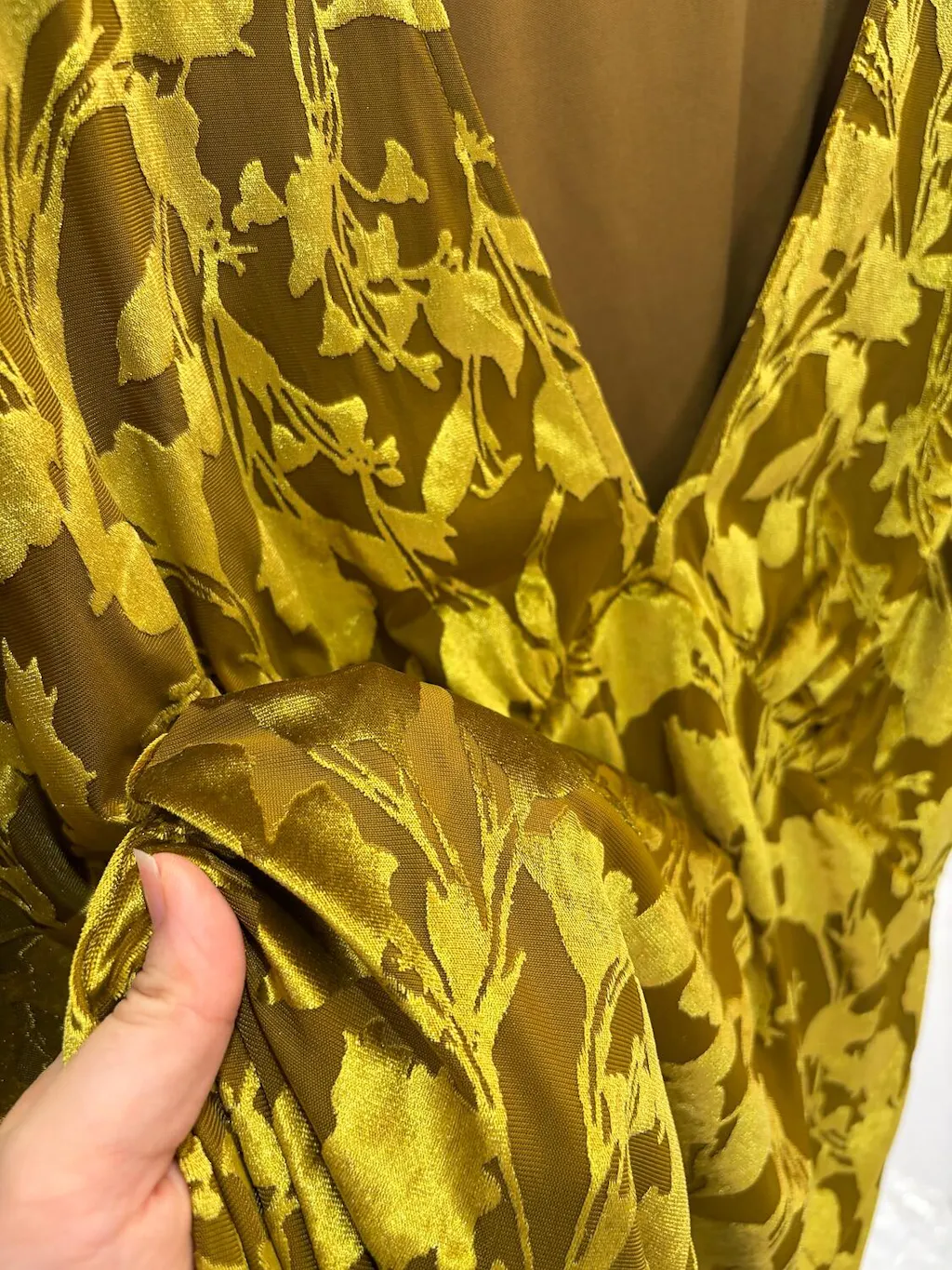 Verleihen Sie Ihrem Abend-Look mit diesem eleganten Maxikleid das gewisse Etwas. Der schmeichelhafte V-Ausschnitt und die hohe Taille betonen Ihre Figur in dieser knöchellangen Silhouette . Der florale Burnout-Stoff sorgt für einen Hauch von Schimmer und Tiefe, während das Stretchmaterial für optimalen Tragekomfort bei jeder Bewegung sorgt. Perfekt für festliche Anlässe, Hochzeiten und besondere Feierlichkeiten.