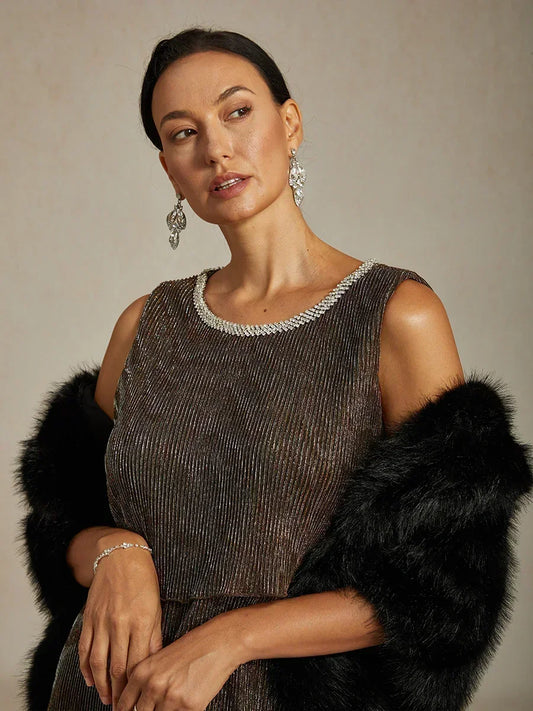 Pantalón de pierna recta de longitud recortada con sobreposición de pierna dividida de gasa