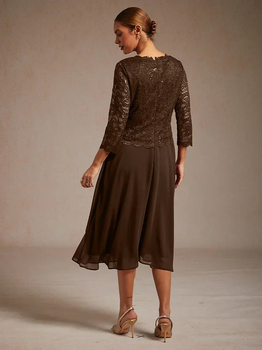 3/4 Sleeve Knit Mock Twinset with Floral Pattern