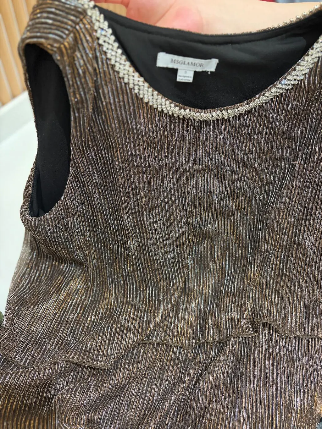 Vestido línea A con encaje roseta y adornos de lentejuelas