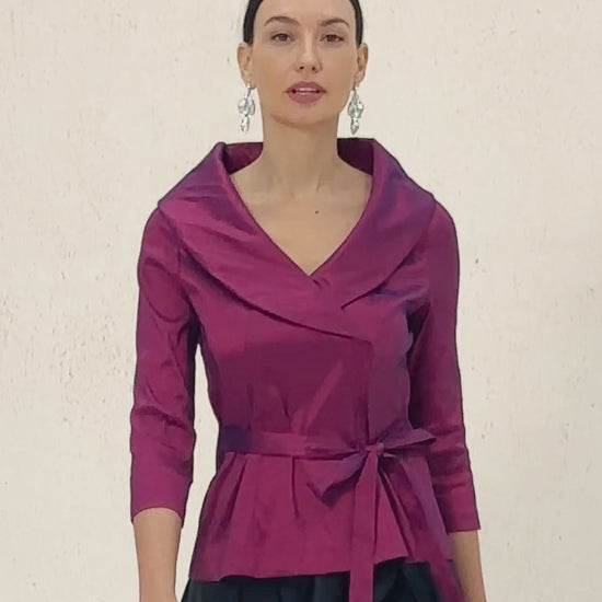 Por favor, proporcione el texto que desea que refine para poder ayudarle. blusa elegante de tafetán elástico con mangas 3/4. Diseñado con un silhueta asimétrica, esta blusa presenta un cuello estructurado, una cintura con nudo delantero elegante detalle, y un cremallera trasera oculta para un ajuste suave. La tela elástica ofrece comodidad sin sacrificar la forma, lo que la hace perfecta para ocasiones especiales y noches elegantes.