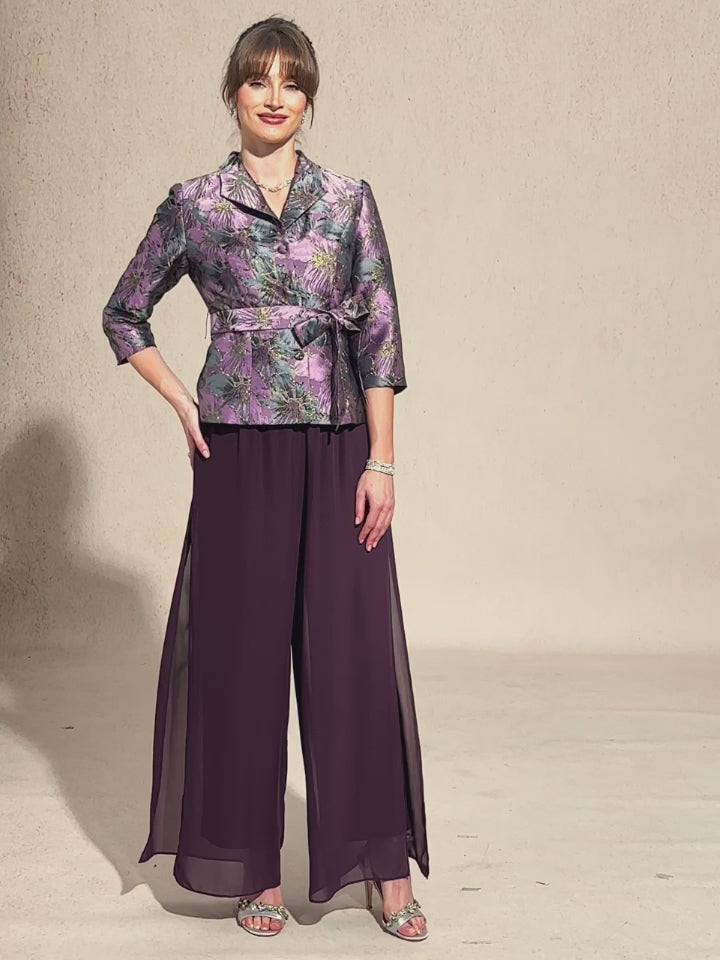 - Fabric: Floral jacquard with metallic threads, Glossy finish, Non-stretch body fabric, Soft stretch lining