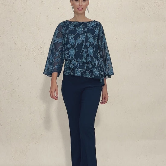 Coupe décontractée avec une encolure ronde, des manches superposées de style cape et des détails floraux pour une silhouette élégante et féminine -