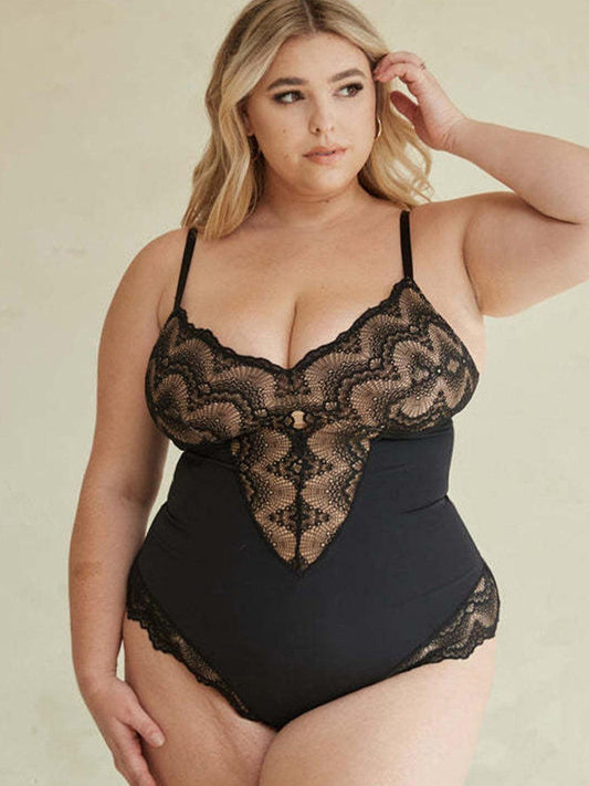 Lace Mesh Tummy Control Deep V Bodysuits