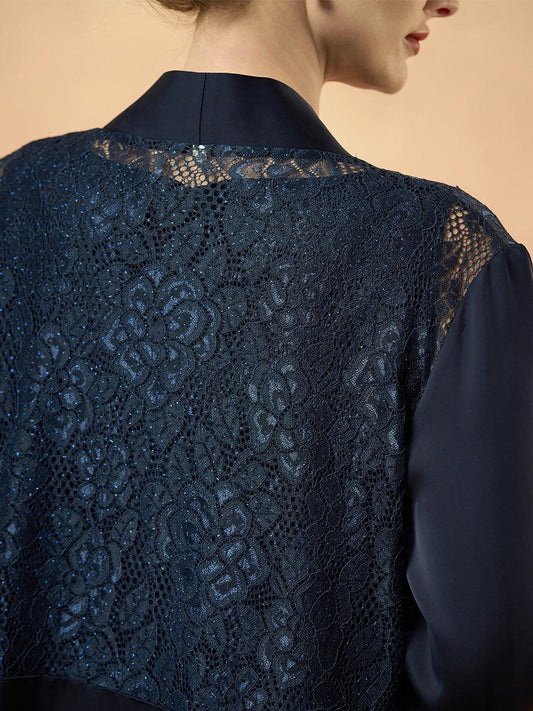 Elegant Knee-Length Lace Dress With Sheer Chiffon Jacket