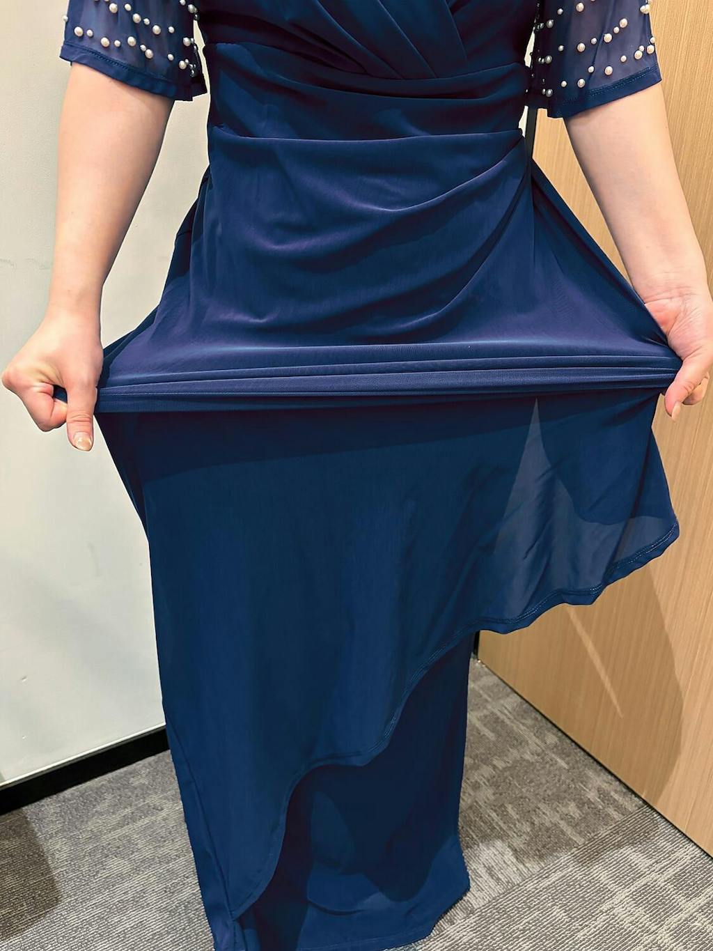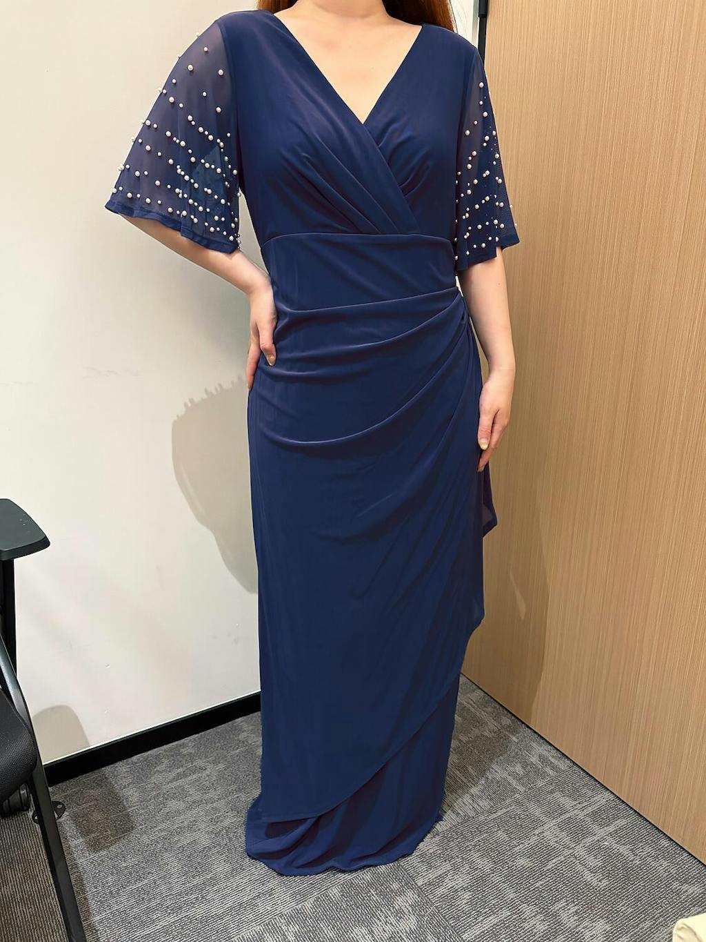 ロングストレッチベルベットのイブニングドレス(3/4袖)