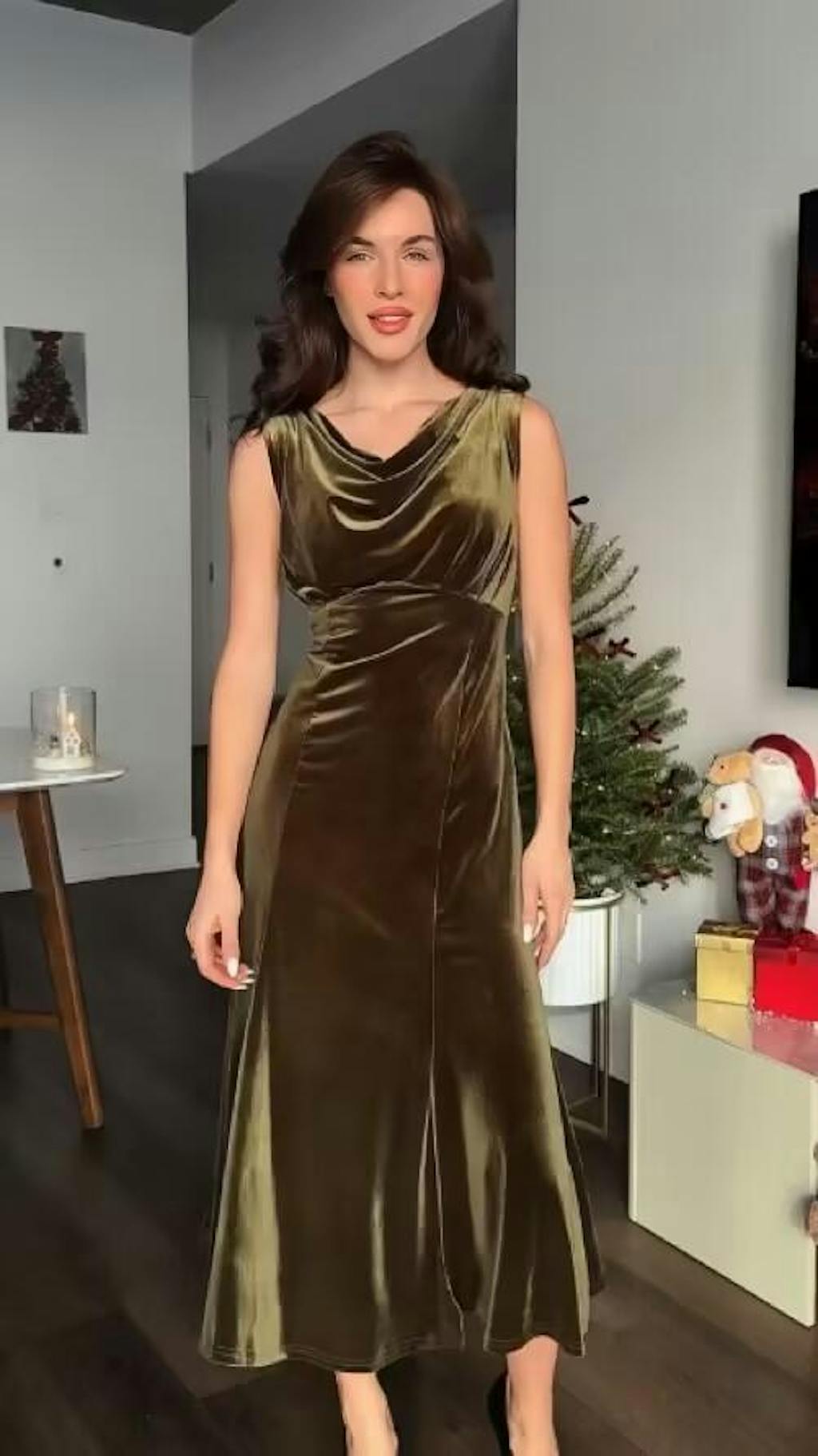 This sleeveless midi dress features a flattering scoop neckline and a fitted silhouette that gently flares below the knees, creating an elegant A-line effect. Crafted from high-stretch velvet, it hugs your curves comfortably while allowing freedom of movement. Perfect for cocktail parties, evening events, or any formal occasion where you want to make a statement.