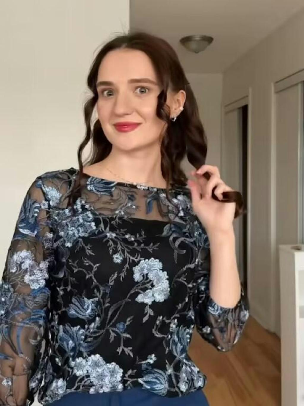 Beautifully detailed blouse. The embroidery is delicate, and the illusion neckline adds a soft, elegant touch.