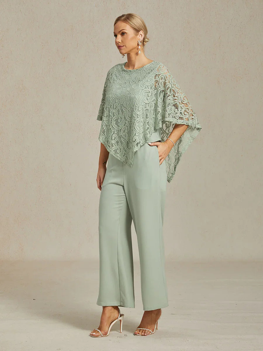 This airy lace top features a relaxed silhouette with batwing half sleeves and an intricate lace pattern. Designed with a classic crew neckline and a loose fit, it offers both comfort and elegance. The fresh tone makes it perfect for spring and summer, whether paired with matching trousers or styled casually. Ideal for day outings, casual gatherings, or semi-formal events.