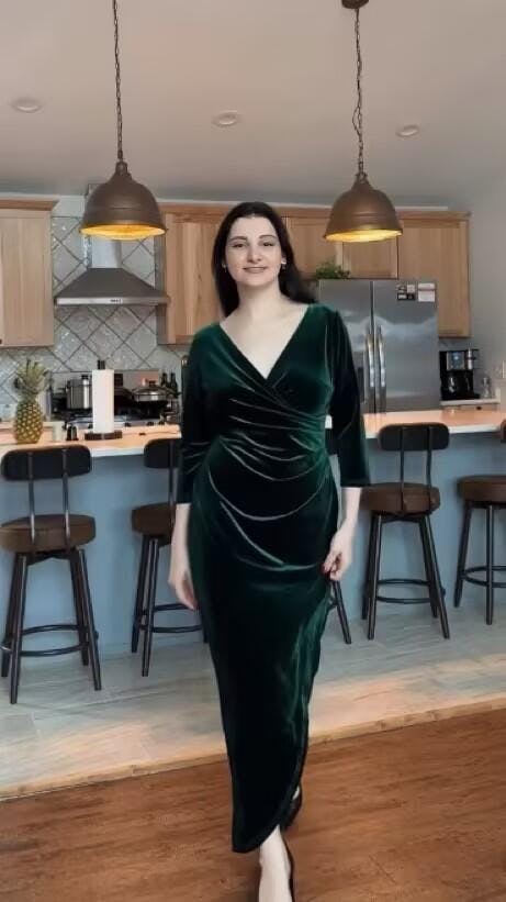 The velvet looks rich without being heavy, and the stretch makes it easy to move and sit comfortably. I appreciated how elegant it looked with minimal accessories.