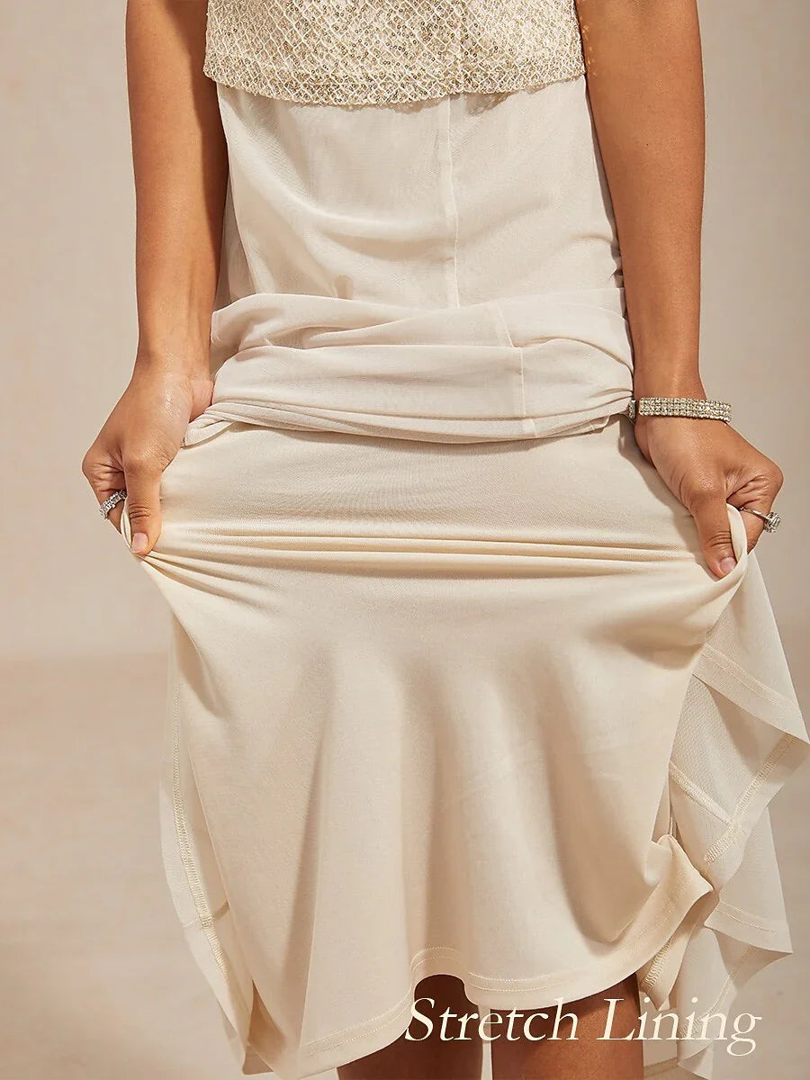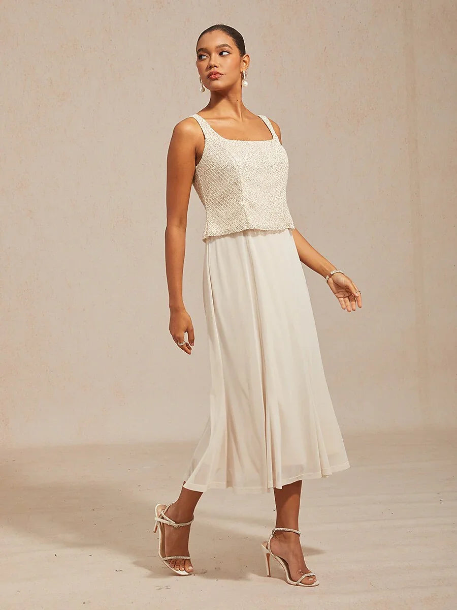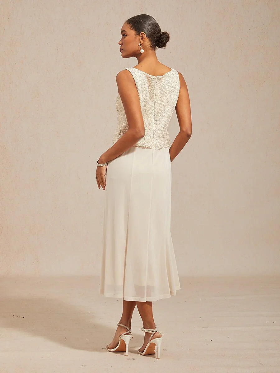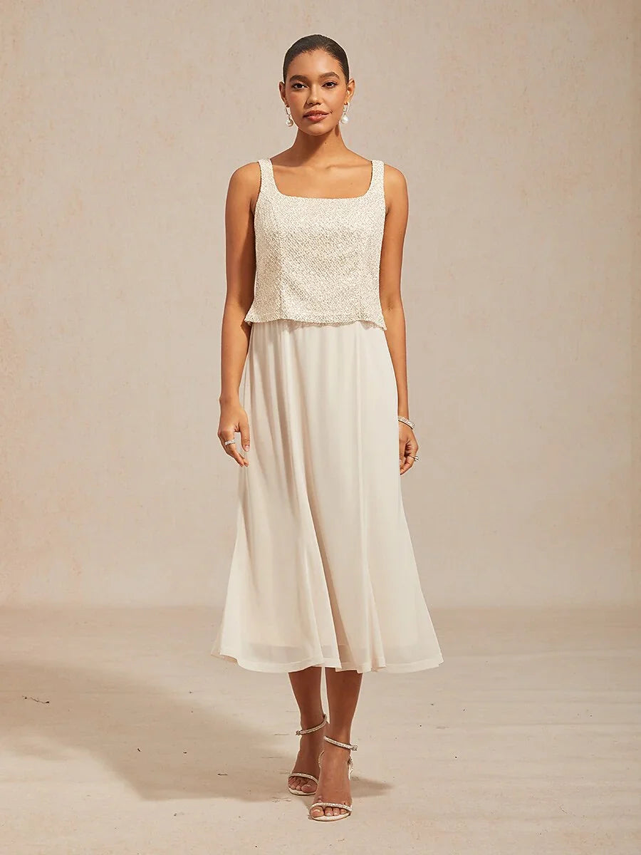 Elegant Lace and Chiffon Tea-Length Dress