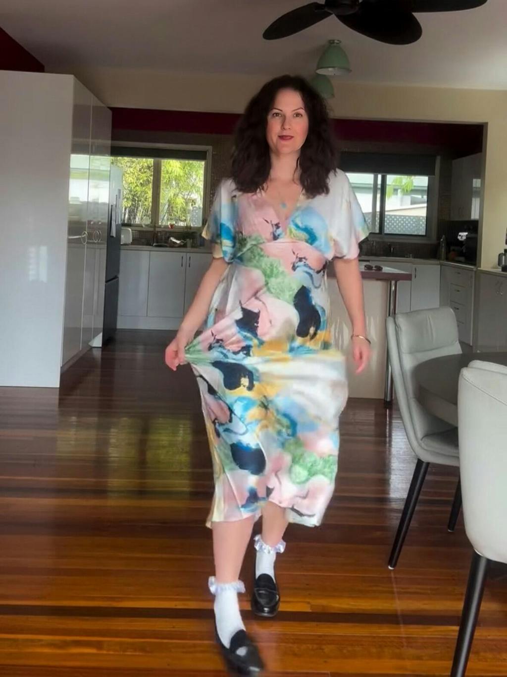 I was hesitant about the wrap style, but it adjusted perfectly. The dress is beautiful, though the fabric is a bit delicate—hand wash only. Absolutely love the unique marble print!