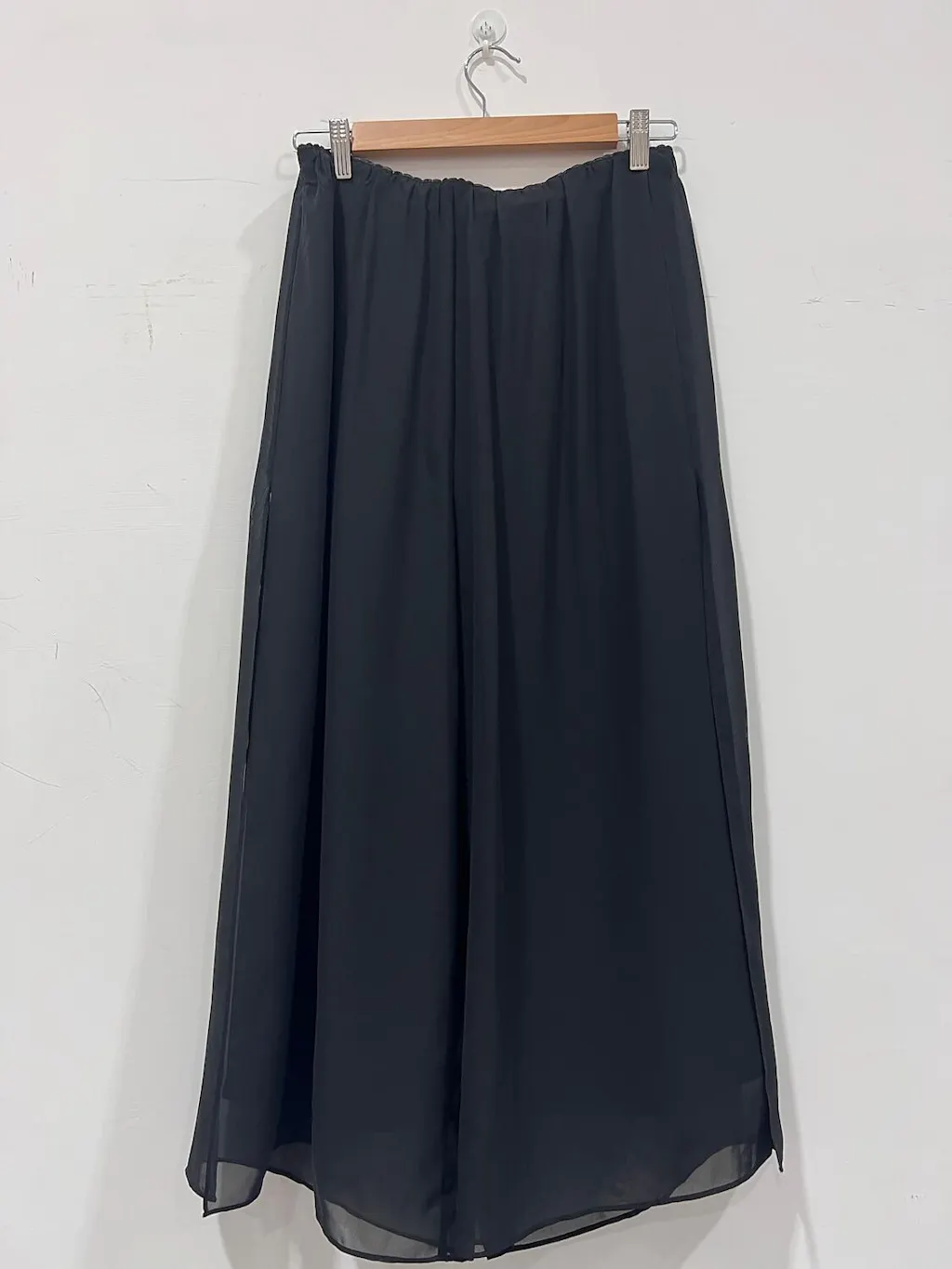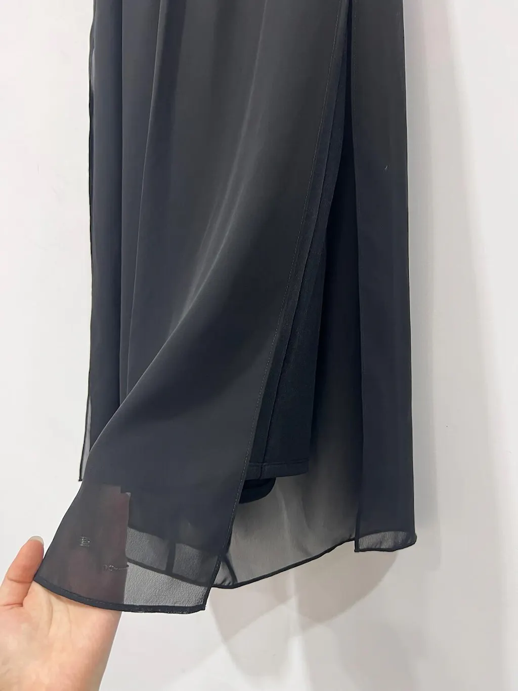 Step into effortless elegance with these straight-leg pants featuring a flowing chiffon split-leg overlay. The design combines comfort and sophistication, with a soft, high-stretch lining for all-day wear. The sheer chiffon overlay adds graceful movement and a touch of drama a perfect for evening events, weddings, banquets, or upscale dinners. Pair them with heels for a refined look, or dress them down with flats for daytime chic.