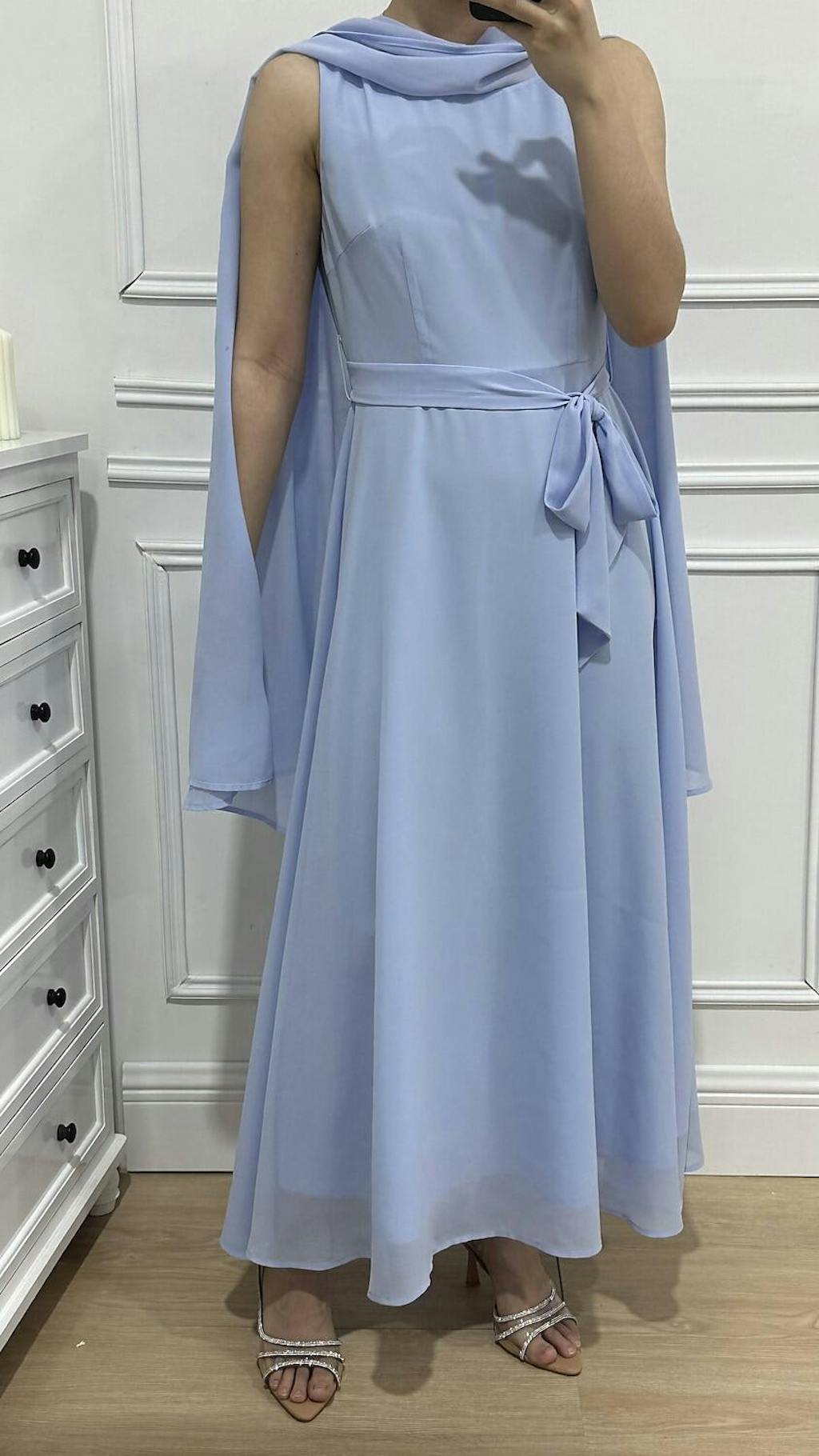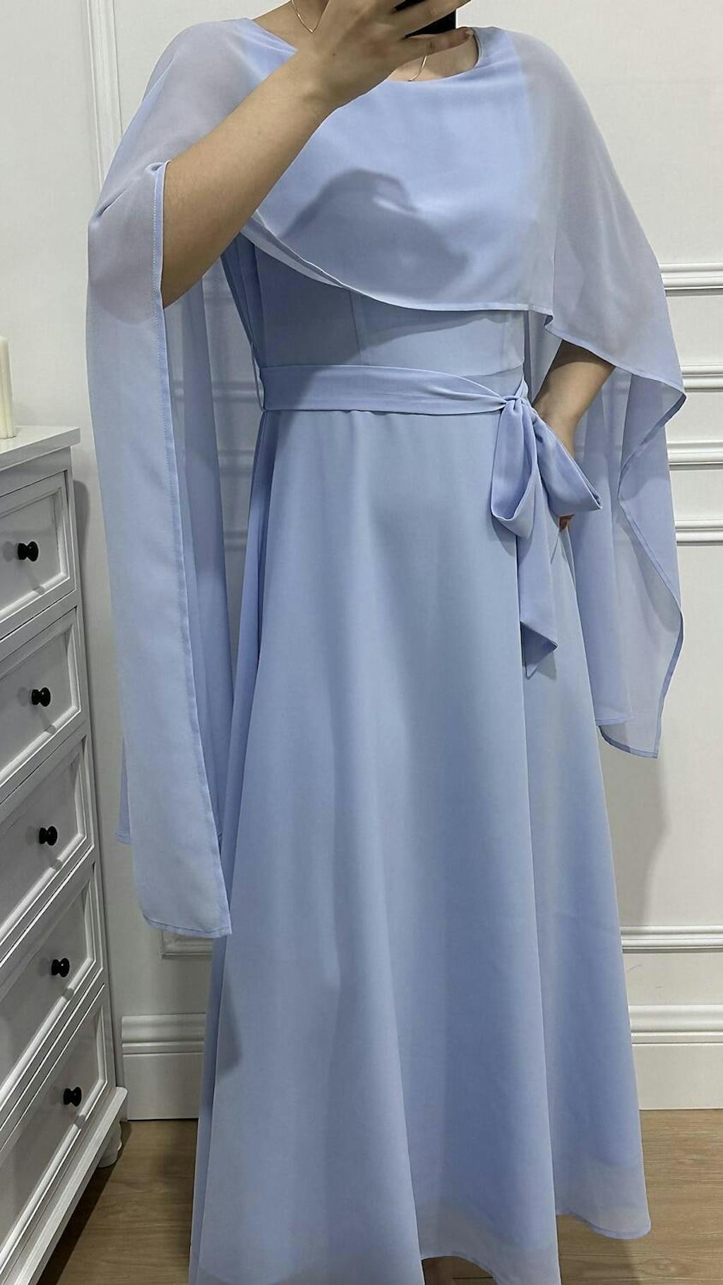 Fell in love with this charming ice blue color! The double chiffon layers mean you'll never need a slip - such thoughtful design. But the real surprise? The styling tips from your customer team! They shared two special ways to wear it (see my photos) that made me adore this dress even more. Five stars all around!