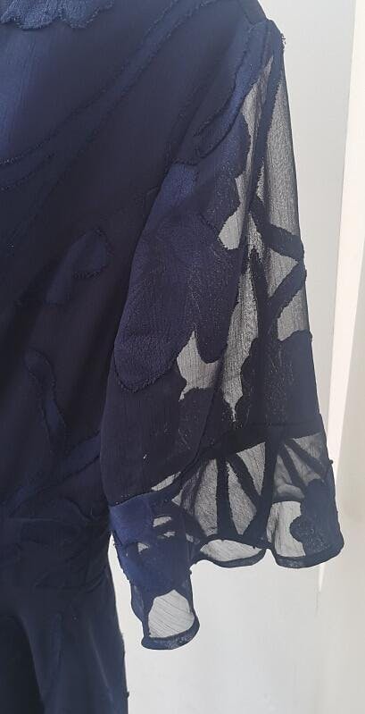 This lace dress offers a touch of elegance, ideal for a wedding guest or cocktail party look. With its refined V-neckline and soft flutter sleeves, the dress has a classic A-line silhouette accented by delicate ruffle details, enhancing its graceful appeal.