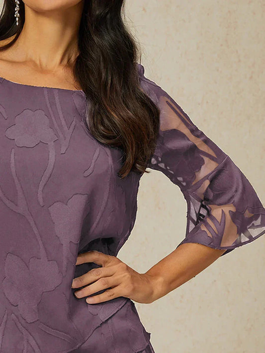 花卉蕾絲刺繡洋裝搭配雪紡外套