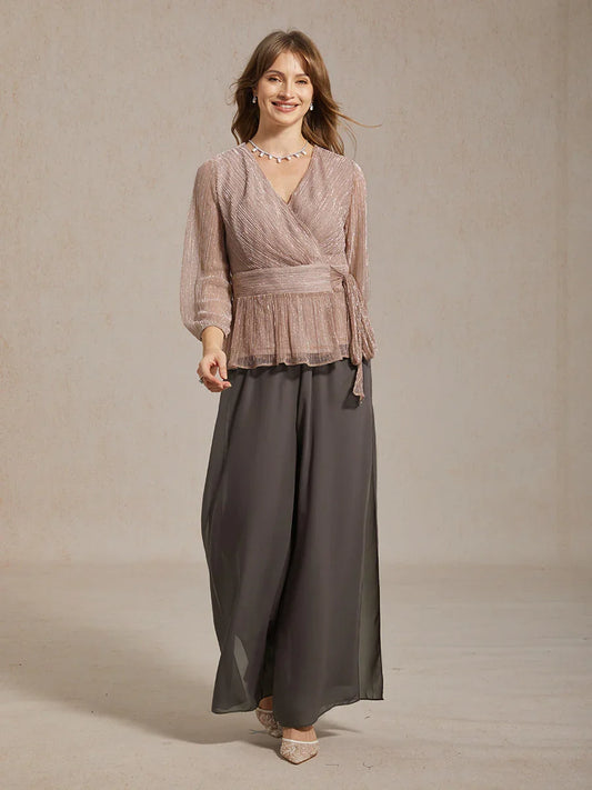 Metallic Pleated Chiffon Evening Wrap Top